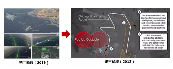 •   第三階段從2018年1月開(kāi)始,測(cè)試使用6架真實(shí)無(wú)人機(jī)以及模擬飛機(jī)的協(xié)同能力,實(shí)現(xiàn)單人指揮無(wú)人機(jī)小組完成復(fù)雜任務(wù)。